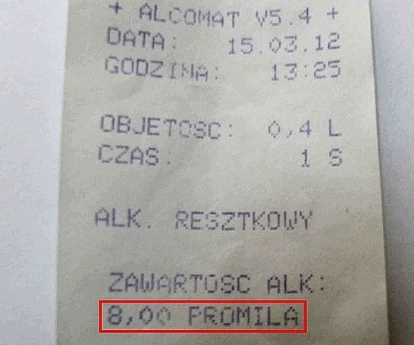 Są w świecie motoryzacji rekordy, o pobiciu których wolelibyśmy nie słyszeć. należy do nich maksymalne stężenie alkoholu we krwi u osoby prowadzącej samochód. nowym rekordzistą jest kierowca z powiatu ostrołęckiego. po wypadku miał 22 promile alkoholu we krwi. Dopuszczalna ilość promili w organizmie, przy której zgodnie z polskim prawem można usiąść za kierownicą to maksymalnie do 0,2 promila we krwi, czyli do 0,1 mg/l w wydychanym powietrzu. wyższe wartości oznaczają, że kierowca popełnił wykroczenie (pomiędzy 0,2 a 0,5 promila alkoholu) lub przestępstwo (więcej niż 0,5 promila.
